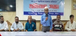*হক মার্কেটের দোকান নং–৫৪ নিয়ে চুক্তি লঙ্ঘনের অভিযোগ নির্মাণ বন্ধের দাবিতে ৭০ দোকান মালিকের মানববন্ধন করেন