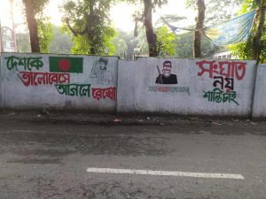 উলানিয়া বন্দর স্কুলে অ্যান্ড কলেজ দেয়ালে নতুন বাংলাদেশ গড়ার প্রতিচ্ছবি।