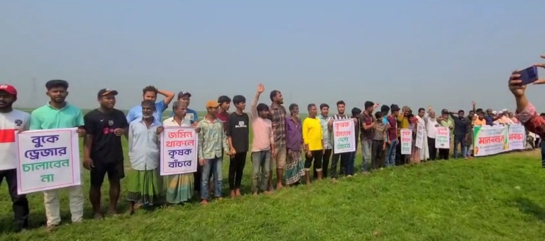 ব্রাহ্মণবাড়িয়ার তিতাস নদী খনন না করার দাবিতে মানববন্ধন