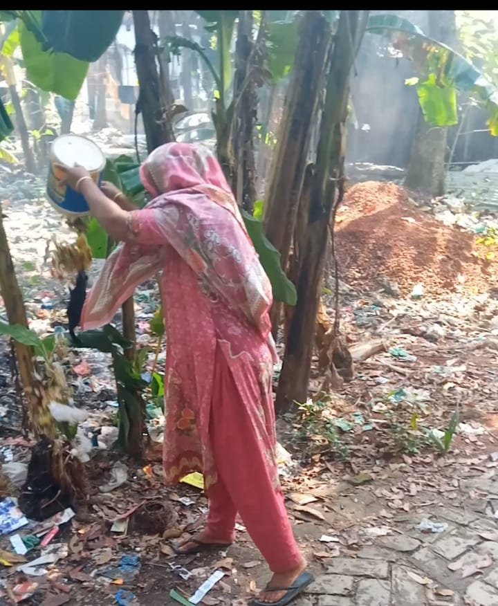 যশোর ঝুমঝুমপুর নিরিবিলি পাড়ায় চলাচলের পথে বাসা বাড়ি থেকে ময়লা আবর্জনা ফেলে। রাস্তা নোংরা করছে কিছু লোক। তাদের বারবার নিষেধ