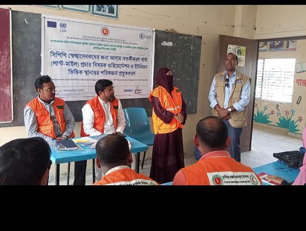 আলোচনা বিষয়বস্তু দাতা সংস্থা বিশ্ব খাদ্য কর্মসুচি ( WFP) বাস্তবায়নে : সুশীলন। CAA& SRSPপ্রকল্পের আওতায় সিপিপি স্বেচ্ছাসেবকদের জন্য আগাম সতর্কীকরণ
