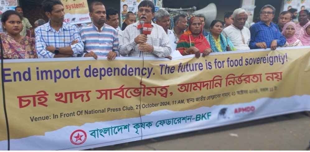 খাদ্য দিবসের প্রেক্ষাপটে ঢাকা জাতীয় প্রেসক্লাবের সামনে জনগণের খাদ্য, ভূমি এ পানির অধিকারের দাবীতে এক সমাবেশ, মানববন্ধন ও মিছিল অনুষ্ঠিত