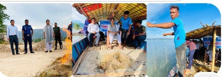 অবৈধভাবে কারেন্ট জাল দিয়ে মাছ শিকার বন্ধ করতে সিলেটের জৈন্তাপুর উপজেলার বিভিন্ন হাওর এলাকায় মোবাইল কোর্ট অভিযান পরিচালনা করছে উপজেলা