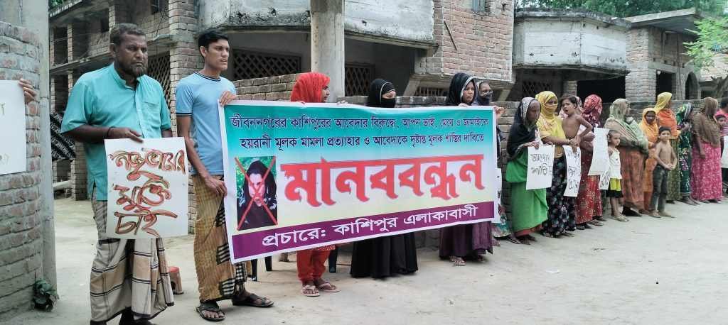 মায়ের শাস্তির দাবিতে মেয়েসহ এলাকাবাসীর মানববন্ধন