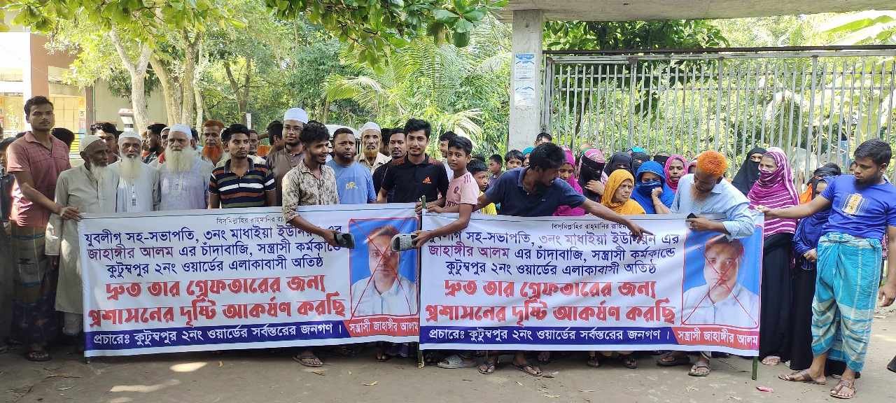 চান্দিনায় যুবলীগের ইউ.পি সহ-সভাপতি জাহাঙ্গীর আলমের সন্ত্রাসী কর্মকান্ডের বিরুদ্ধে মানববন্ধন ও বিক্ষোভ মিছিল