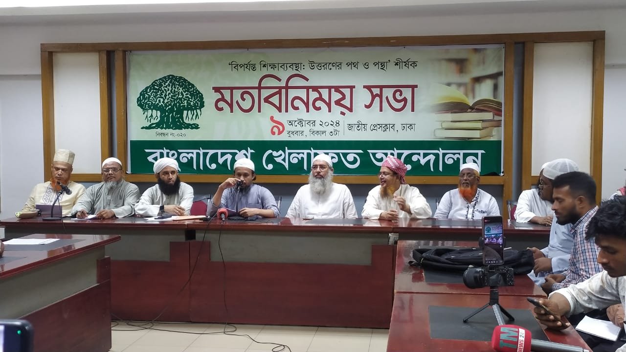 বাংলাদেশ খেলাফত আন্দোলনের উদ্যোগে জাতীয় প্রেসক্লাবে আয়োজিত ‘বিপর্যন্ত শিক্ষা ব্যবস্থা: উত্তরণের পথ ওপন্থা’ শীর্ষক মতবিনিময় সভা অনুষ্ঠিত হয়।মূল প্রবন্ধ তারা