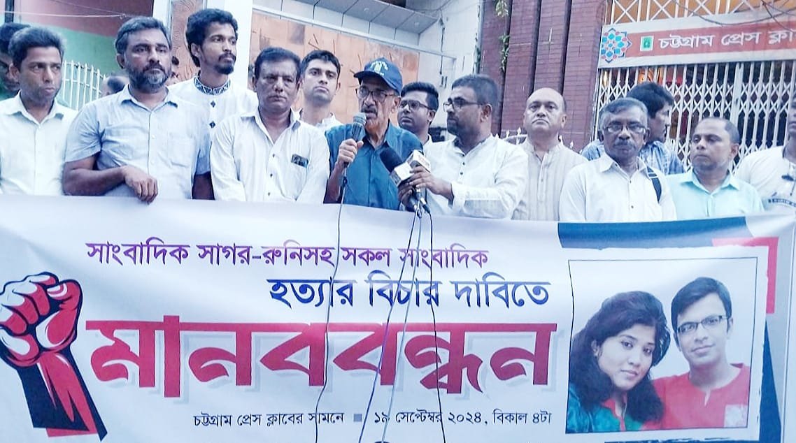 সাংবাদিক দম্পতি সাগর-রুনি হত্যার তদন্ত রিপোর্ট শতাধিক বার পিছানো ও হত্যাকাণ্ডের মুল আসামিদের অদ্যাবধি আইনের আওতায় না আনায় ক্ষোভ জানিয়ে