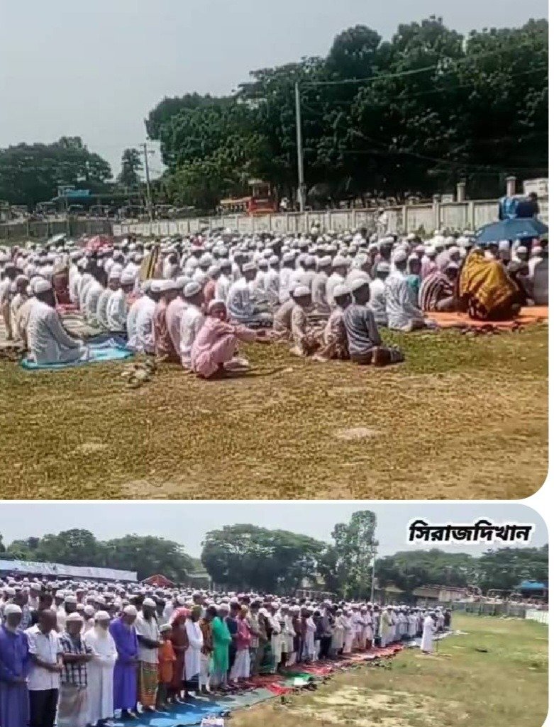 মুন্সিগঞ্জের সিরাজদিখান উপজেলার শেখারনগর ইউনিয়নের সেখারনগর রায় বাহাদুর সিনা ইনস্টিটিউটের স্কুল মাঠে তীব্র তাপপ্রবাহ থেকে মুক্তি চেয়ে বৃষ্টির জন্য ইস্তেখার