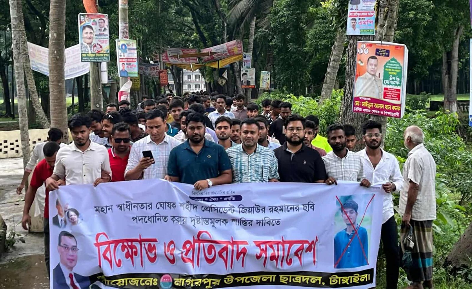 নাগরপুরে জিয়াউর রহমানের ছবি অবমাননার প্রতিবাদে ছাত্রদলের বিক্ষোভ