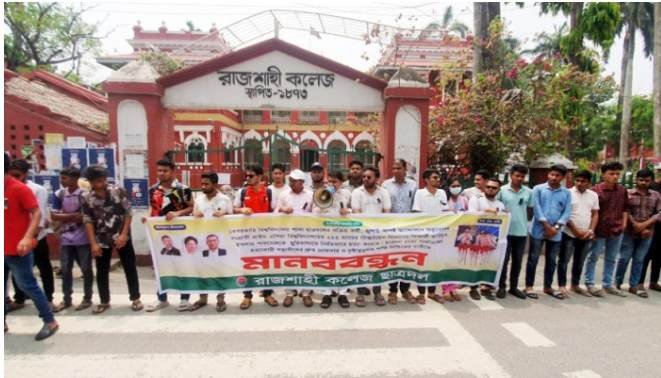 রাজশাহীতে ছাত্রদল নেতা পারভেজ হত্যার প্রতিবাদে মানব বন্ধন
