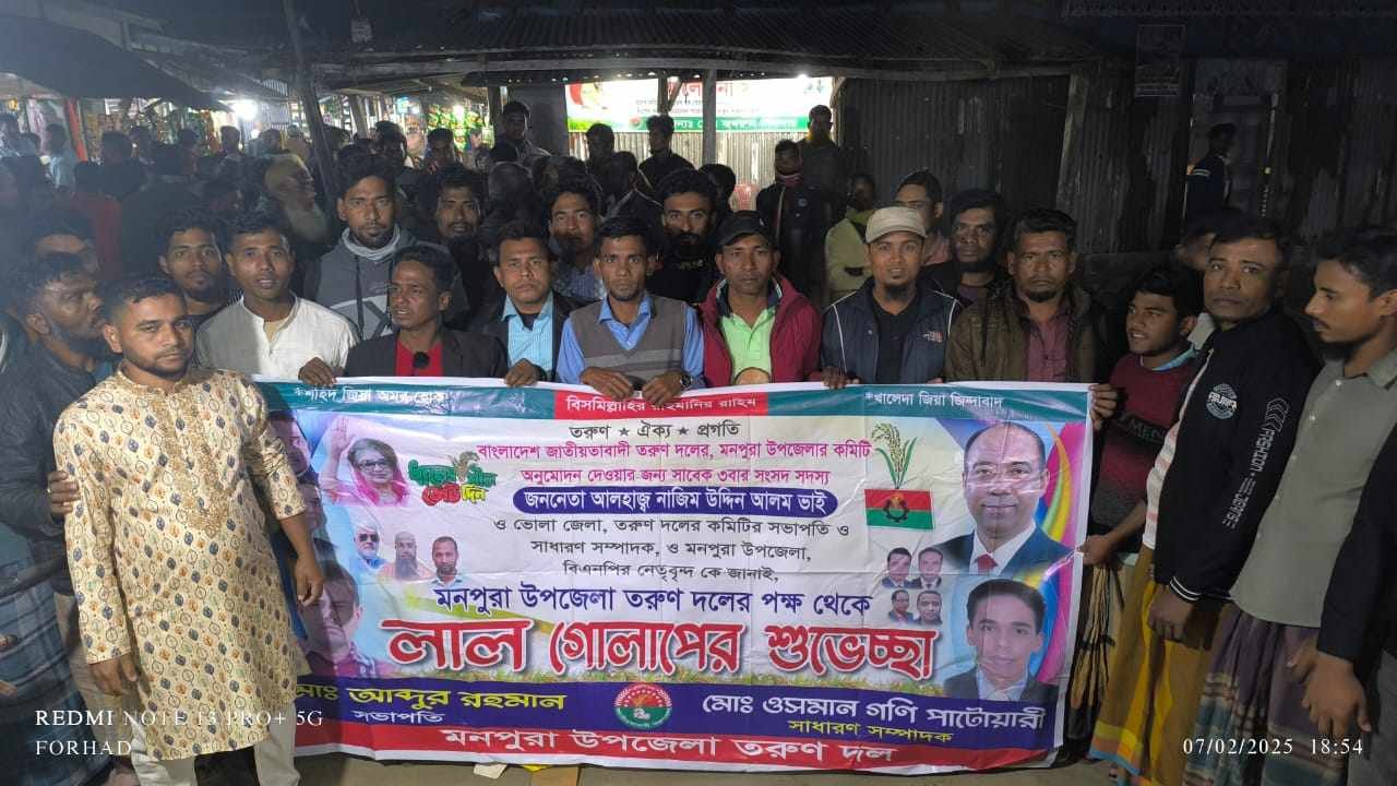 মনপুরা উপজেলা জাতীয়তাবাদী তরুণ দলের পরিচিত সভা গনসংযোগকালে লিফলেট বিতরণ।