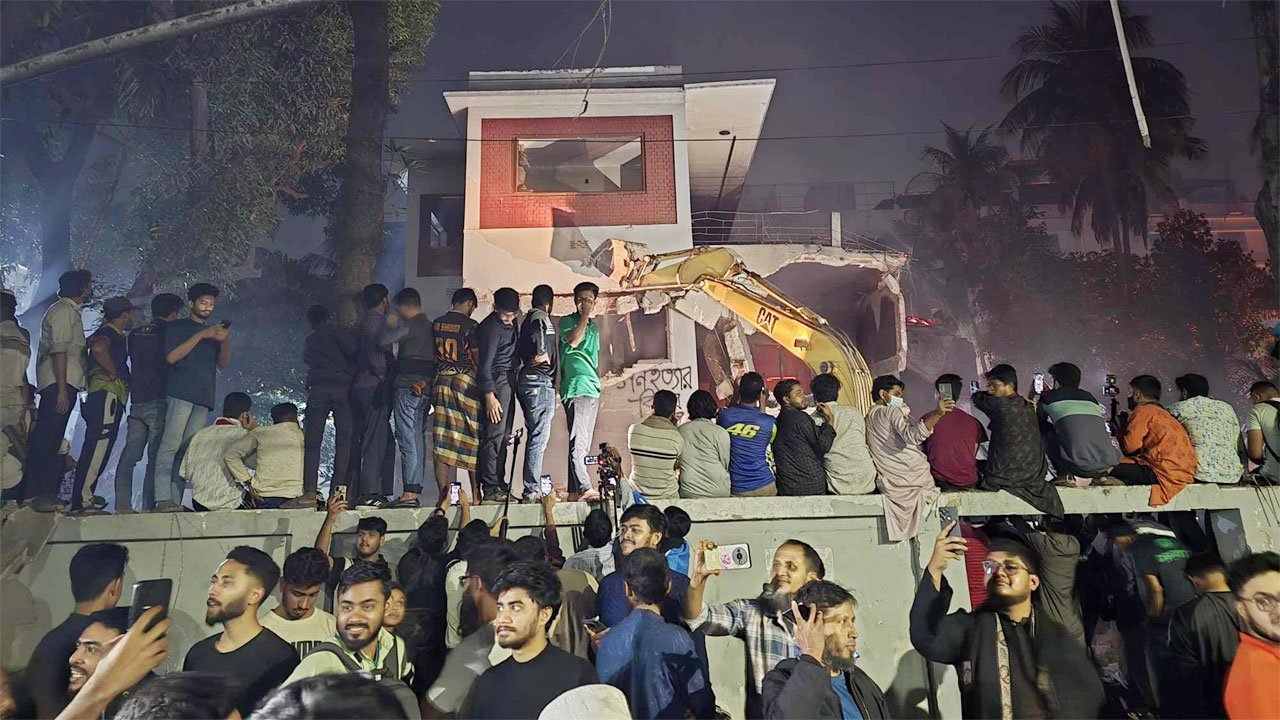 পুড়ল হাসিনার সুধাসদনআ শেখ হাসিনার বক্তব্যে উত্তেজনা ভাঙা হচ্ছে শেখ মুজিবের বাড়ি,