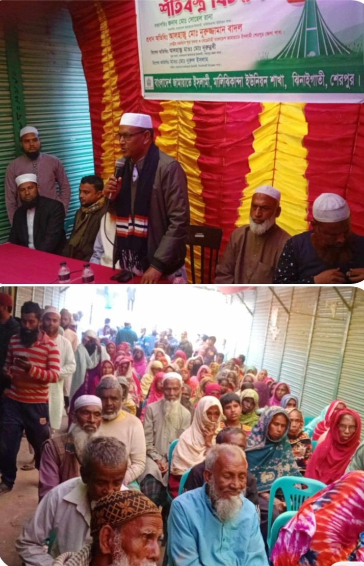 শেরপুরের ঝিনাইগাতীতে জামায়াতে ইসলামীর উদ্যোগে ৩০০ শীতার্তদের মাঝে শীতবস্ত্র বিতরন করা হয়েছে।শনিবার (২১ডিসেম্বর) বিকালে উপজেলার মালিঝিকান্দা ইউনিয়ন জামায়াতে ইসলামীর উদ্যোগে