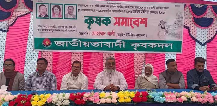 ব্রাহ্মণবাড়িয়া নবীনগর উপজেলার বড়াইল ইউনিয়ন কৃষকদলের উদ্যোগে কৃষক সমাবেশ অনুষ্ঠিত হয়েছে। শুক্রবার (২০ ডিসেম্বর) বিকালে আলহাজ্ব আব্দুর রাজ্জাক একাডেমী মাঠে
