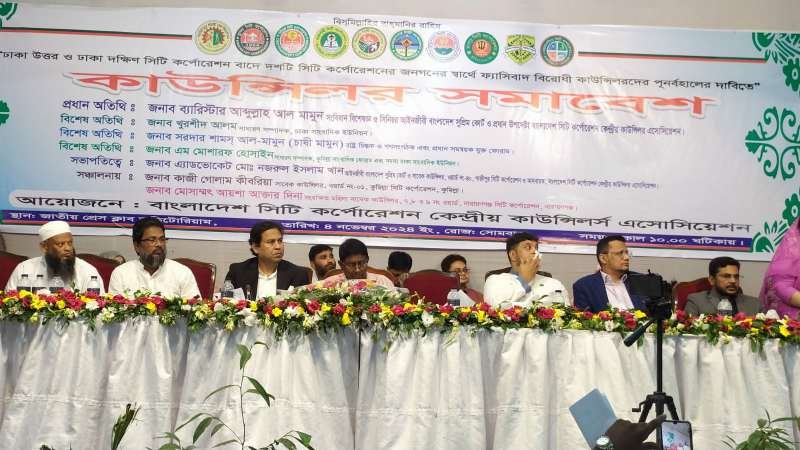 ঢাকা উত্তর ও ঢাকা দক্ষিণ সিটি কর্পোরেশন বাদে দশটি সিটি কর্পোরেশনের জনগণের স্বার্থে ফ্যাসিবাদ বিরোধী কাউন্সিলরদের পুনর্বহালের দাবিতে সমাবেশ করে