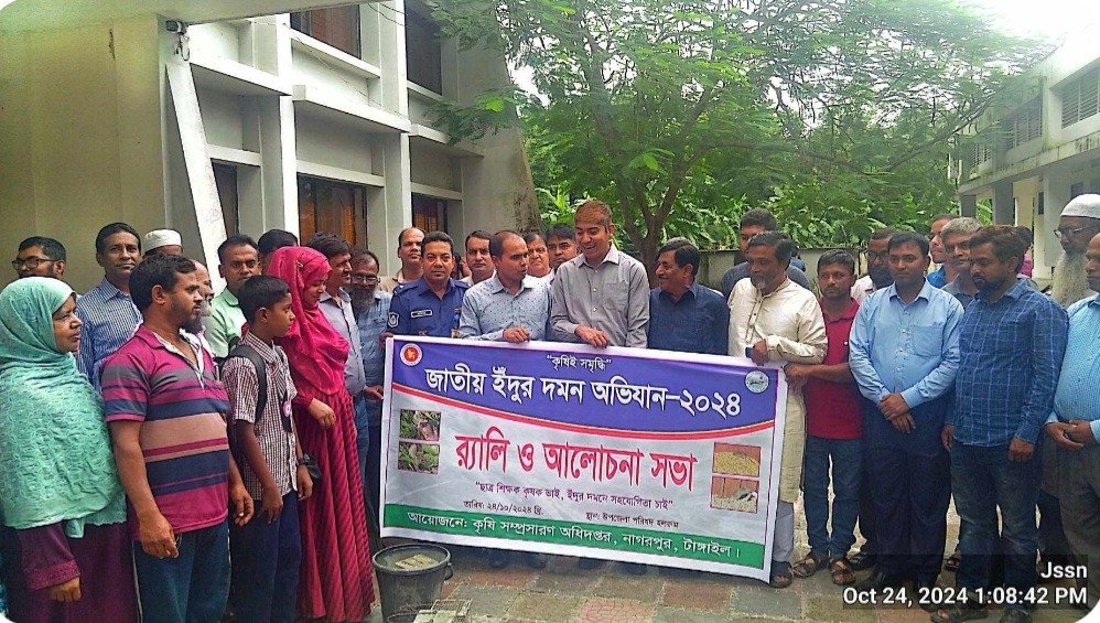 “ছাত্র-শিক্ষক কৃষক ভাই ইঁদুর দমনে সহযোগিতা চাই” এই প্রতিপাদ্যকে সামনে রেখে টাঙ্গাইলের নাগরপুরে ইঁদুর নিধন অভিযানের উদ্বোধন করা হয়েছে। বৃহস্পতিবার