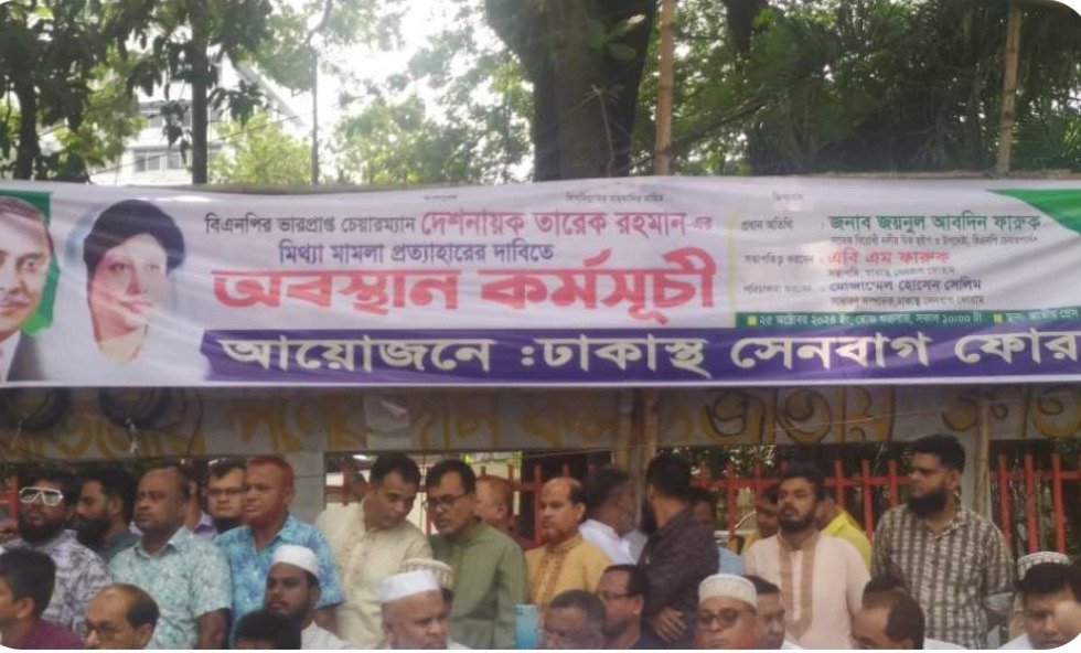 বিএনপির ভারপ্রাপ্ত চেয়ারম্যান তারেক রহমানের বিরুদ্ধে দায়েরকৃত যত মিথ্যা মামলা রয়েছে, সেগুলো প্রত্যাহারের দাবিতে অবস্থান কর্মসূচি পালন করে ঢাকাস্থ সেনবাগ