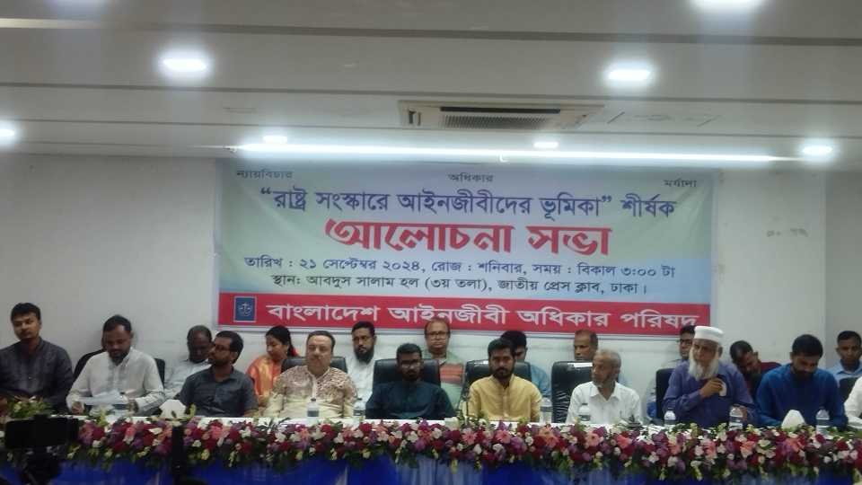 “রাষ্ট্রসংস্কারে আইনজীবীদের ভূমিকা” শীর্ষক আলোচনা সভায় ১১ দফা প্রস্তাবনা পেশ করে বাংলাদেশ আইনজীবী অধিকার পরিষদ।২১ সেপ্টেম্বর শনিবার জাতীয় প্রেসক্লাবের আব্দুস