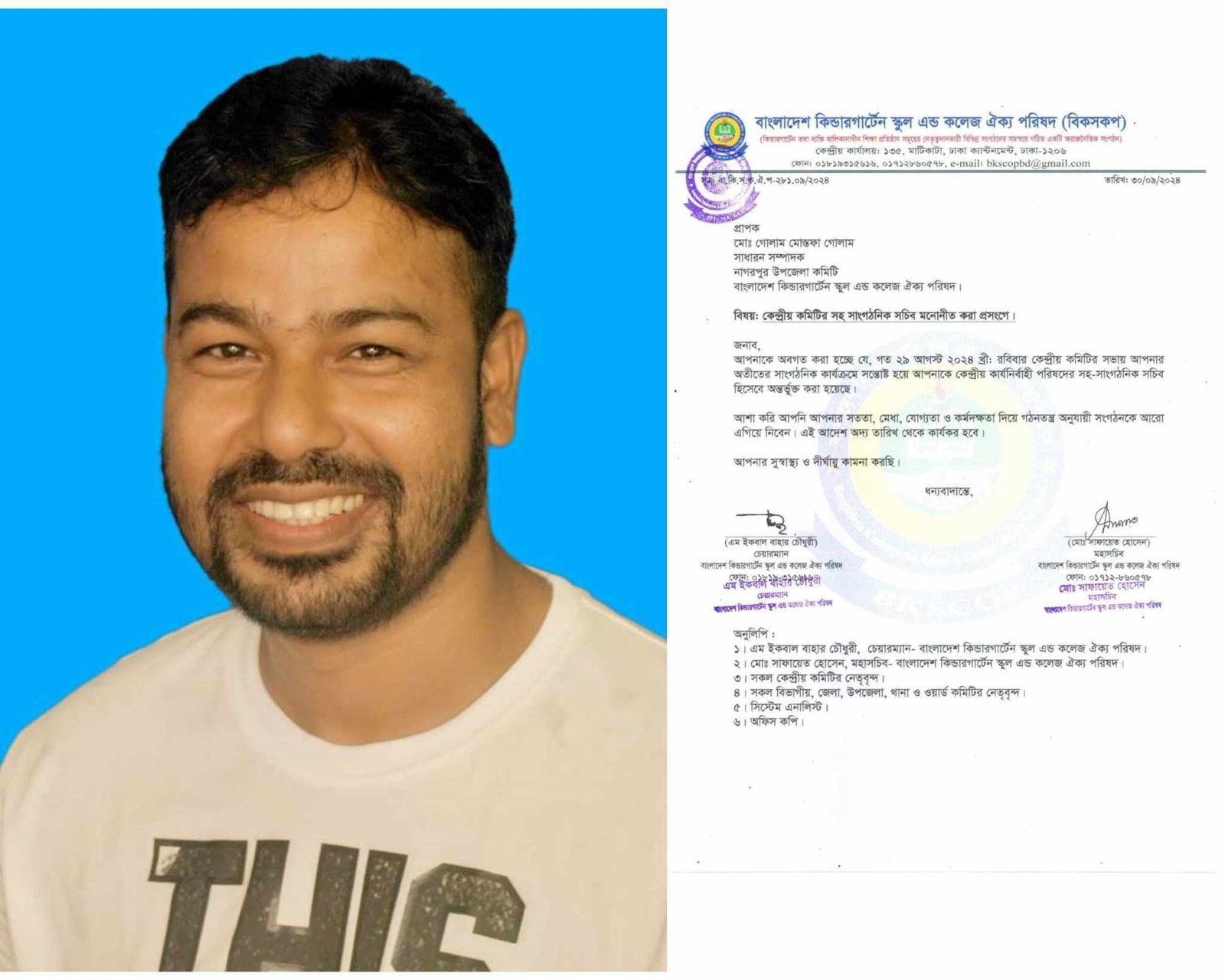 বাংলাদেশ কিন্ডারগার্টেন স্কুল এন্ড কলেজ ঐক্য পরিষদ কেন্দ্রীয় কার্যনির্বাহী কমিটির সহ সাংগঠনিক সচিব নির্বাচিত হয়েছেন টাংগাইলের নাগরপুর উপজেলার দুয়াজানী