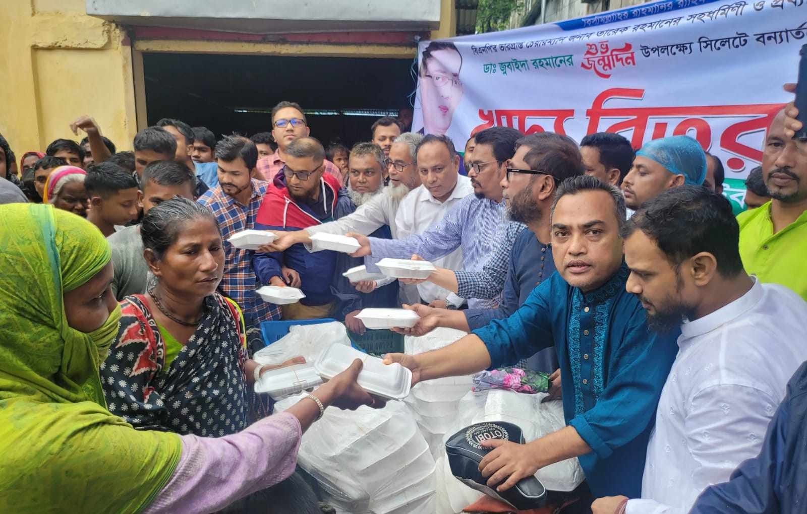ডাঃ জোবাইদা রহমানের জন্মদিনে সিলেটে বন্যার্তদের মাঝে খাবার বিতরণ