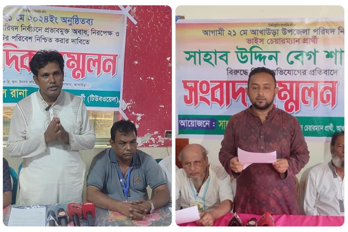 আখাউড়া সুষ্ঠ নির্বাচন নিয়ে পাল্টাপাল্টি সংবাদ সম্মেলন দুই ভাইস চেয়ারম্যান পদপ্রার্থীর