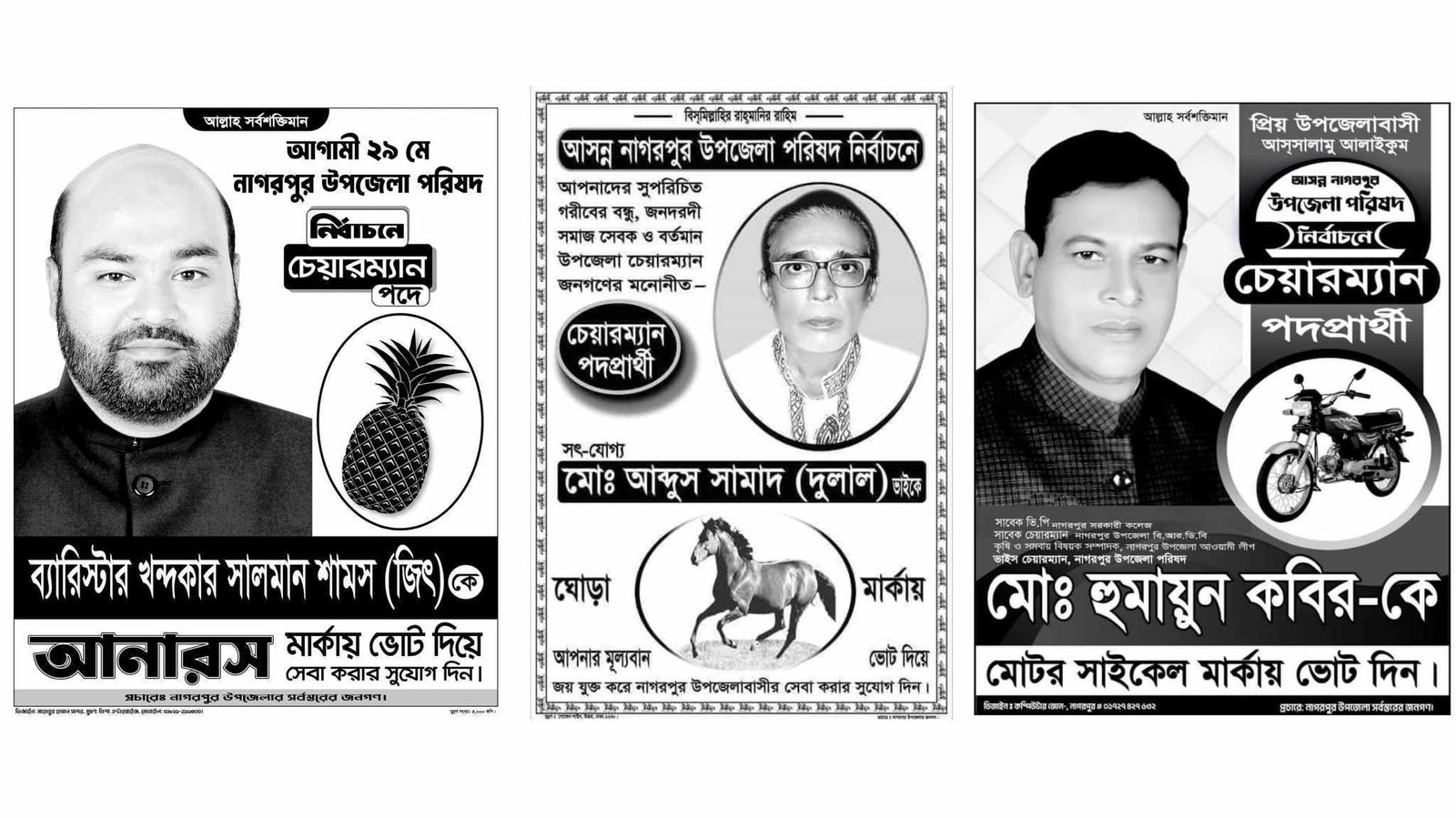 আসন্ন ষষ্ঠ উপজেলা পরিষদ নির্বাচনের তৃতীয় ধাপের ভোটে টাঙ্গাইলের নাগরপুর উপজেলায় ইতিমধ্যে প্রার্থীদের প্রতীক বরাদ্দ হয়ে গেছে, চলছে আনুষ্ঠানিক প্রচার-প্রচারণা।