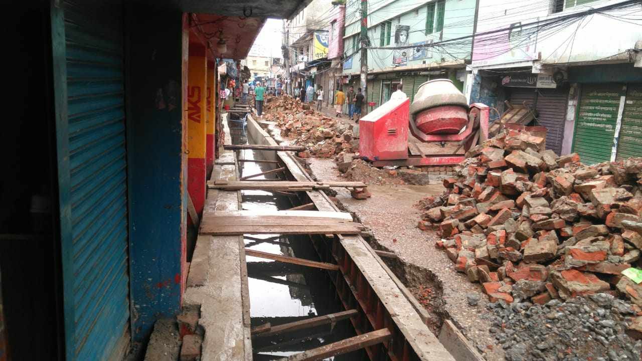 চট্টগ্রাম সিটি কর্পোরেশন এর ৩৮ নং ওয়ার্ডে কলসি দিঘি রোডের পাশে চলমান নালার কাজে নালার কালো রঙের ময়লা পানি দিয়ে