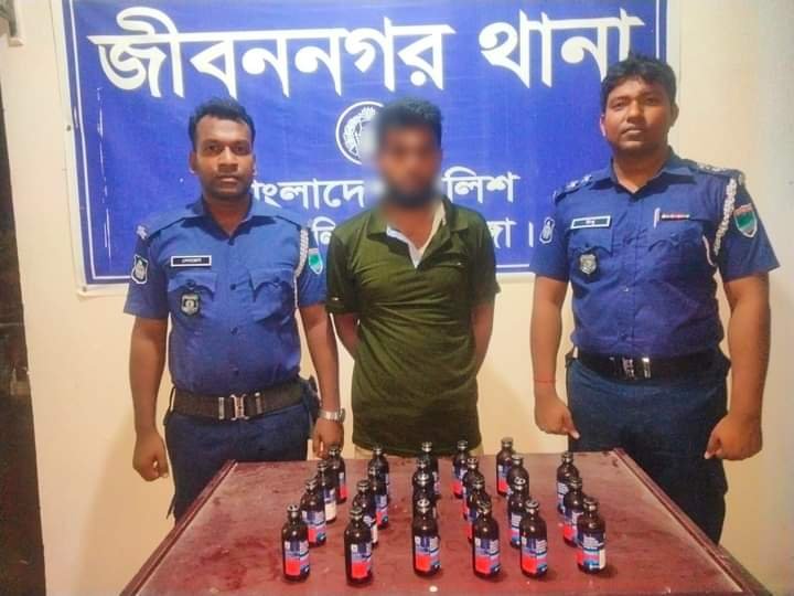 জীবননগর থানা পুলিশ কর্তৃক মাদকবিরোধী অভিযানে ২৪ (চব্বিশ) বোতল ফেন্সিডিল উদ্ধার||গ্রেফতার-০১ জন।