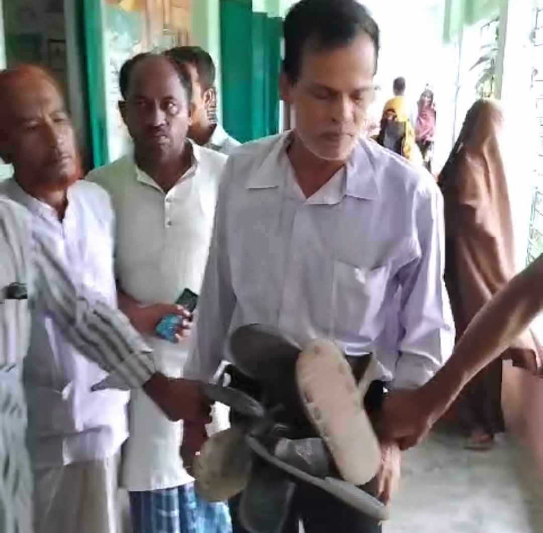 যৌন হয়রানি অভিযোগে শিক্ষক কে জুতার মালা পরিয়ে পুলিশে দিলেন স্থানীয়রা