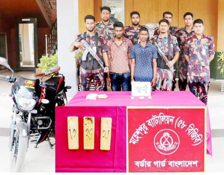 ঝিনাইদহের মহেশপুর সীমান্ত থেকে ৩ কোটি টাকা মূল্যের ৩ পিচ স্বর্ণের বারসহ আপন দুই ভাইকে আটক করেছে মহেশপুর ৫৮ বিজিবির