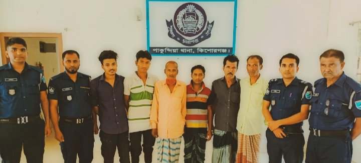 পাকুন্দিয়া থানা পুলিশের অভিযানে জুয়া খেলার সরঞ্জামাদি, নগদ টাকা সহ ৬জন আসামী আটক